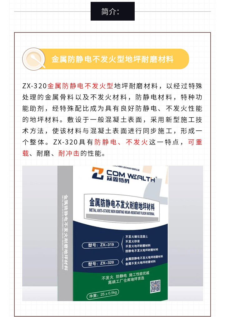ZX-320金屬防靜電不發火地坪耐磨材料